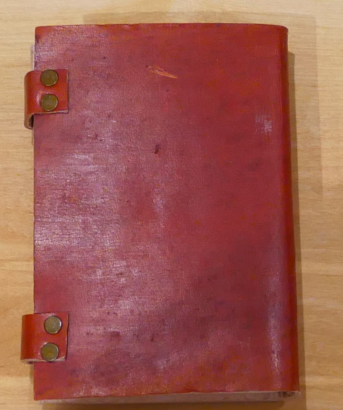 Handgjord anteckningsbok i läder som har en kristall på framsidan.