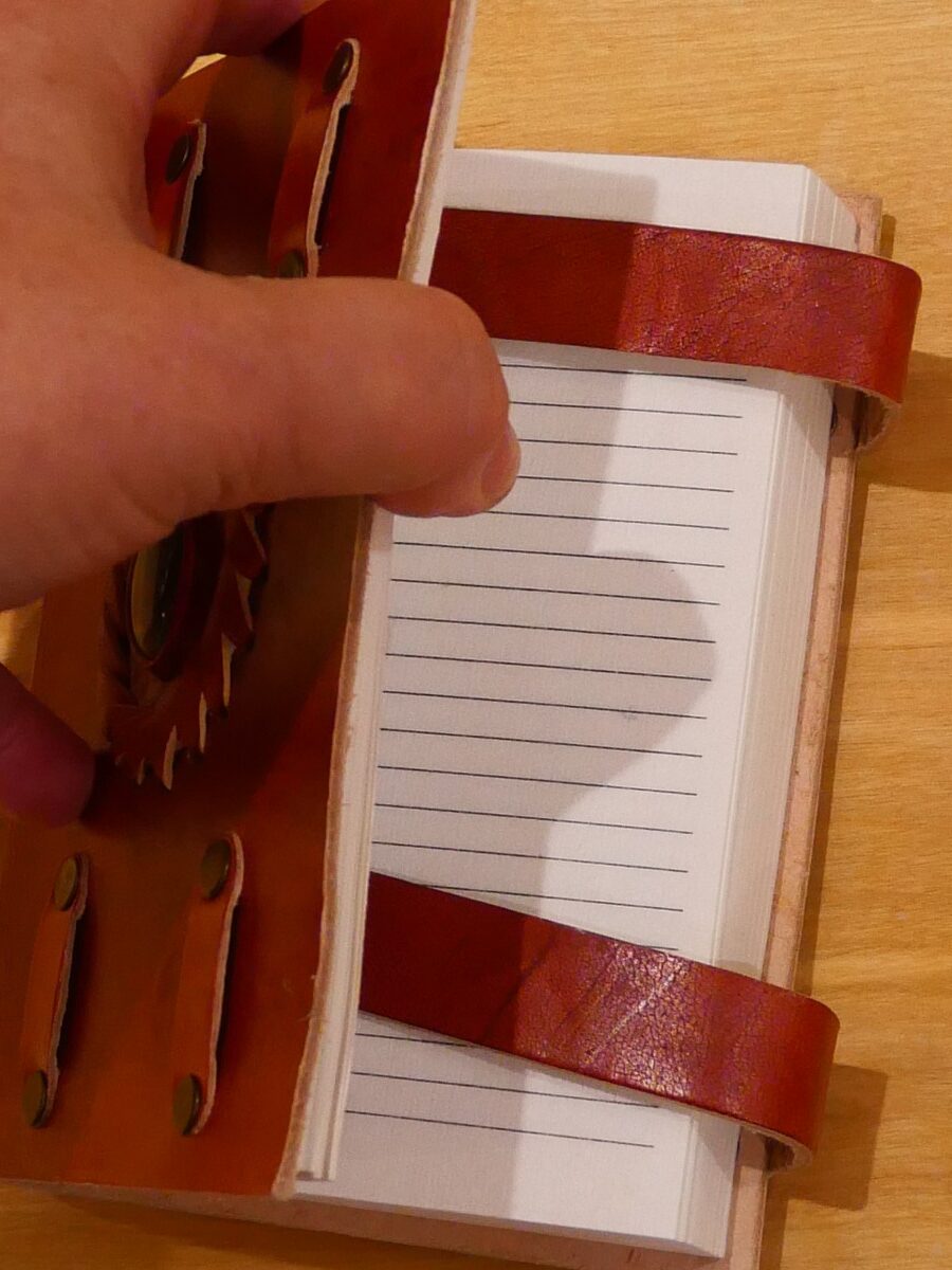 Dessutom har den remmar som stänger anteckningsboken när du inte använder den.